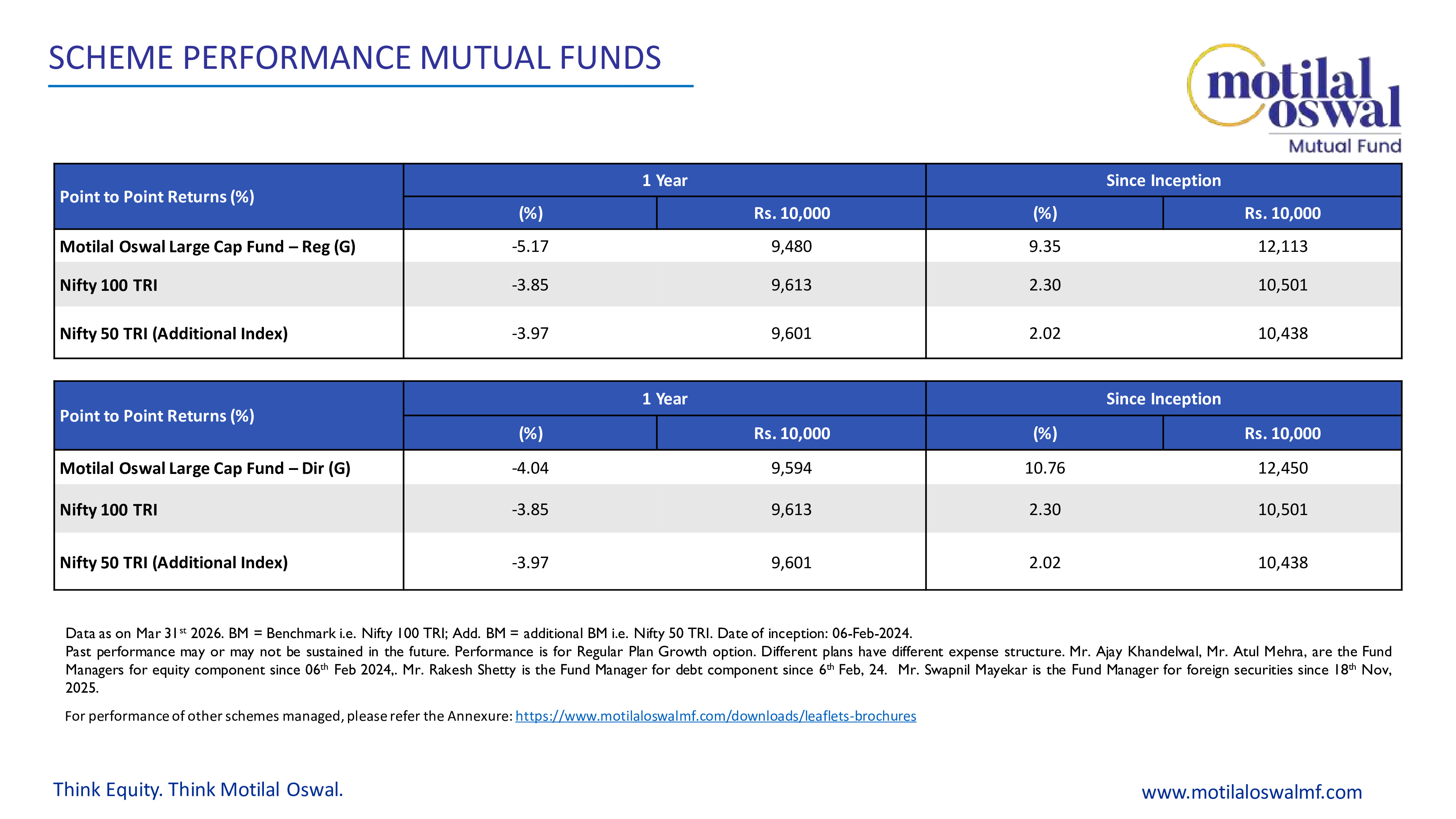 Motilal Oswal Large Cap Fund - Presentation